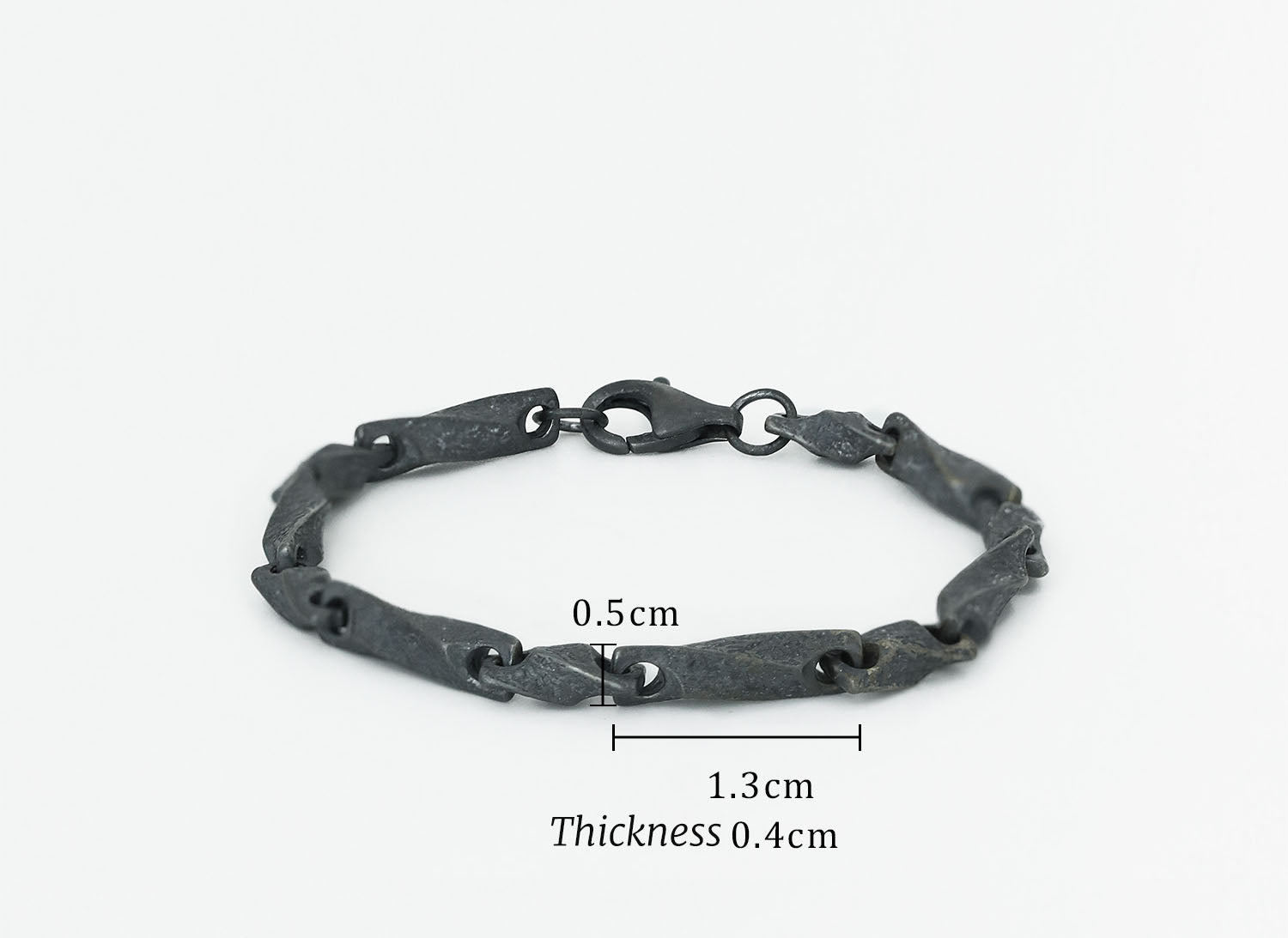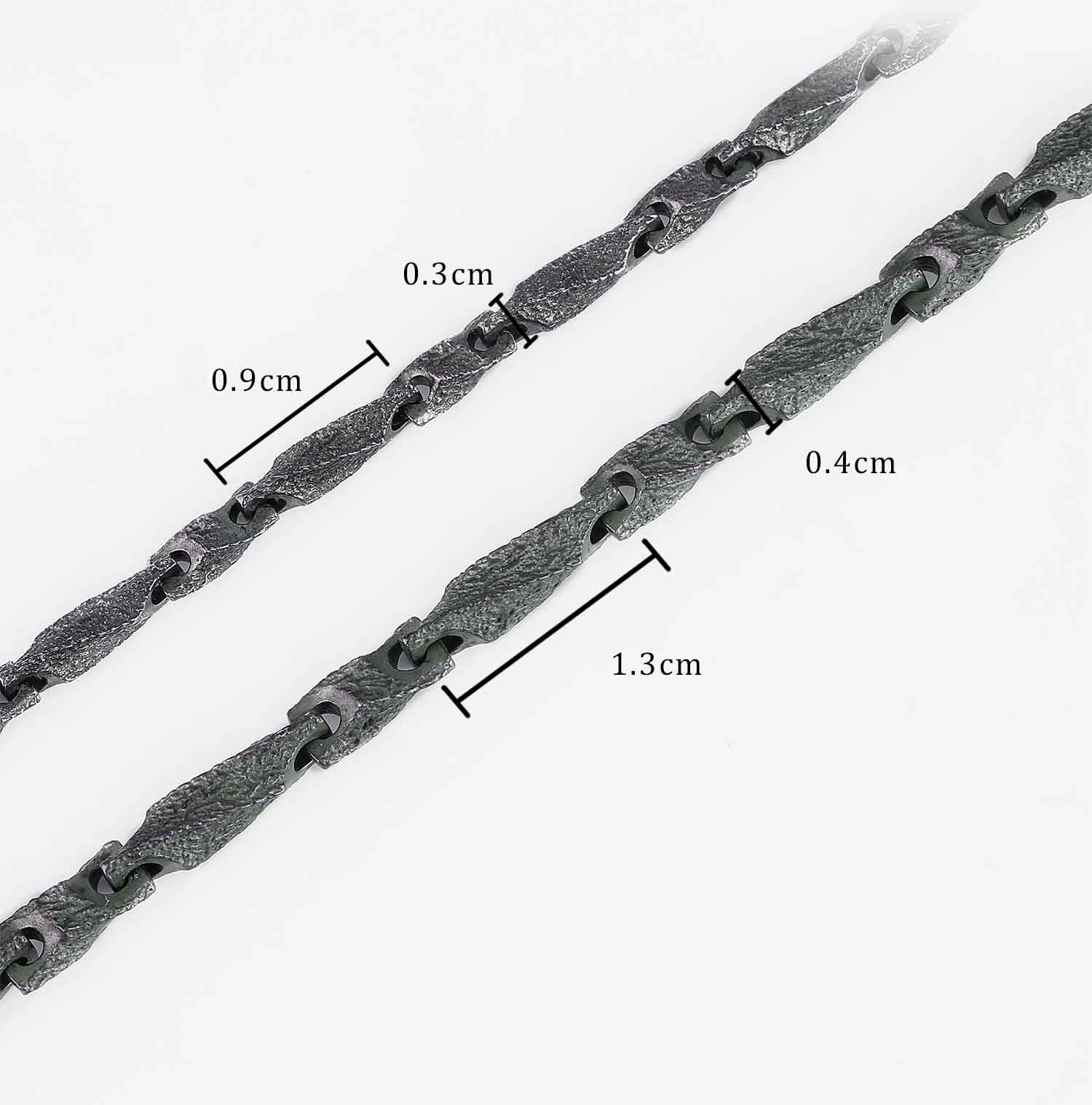 • Link size: Approximately 1.3 cm long, 0.4–0.5 cm wide, 0.4 cm thick