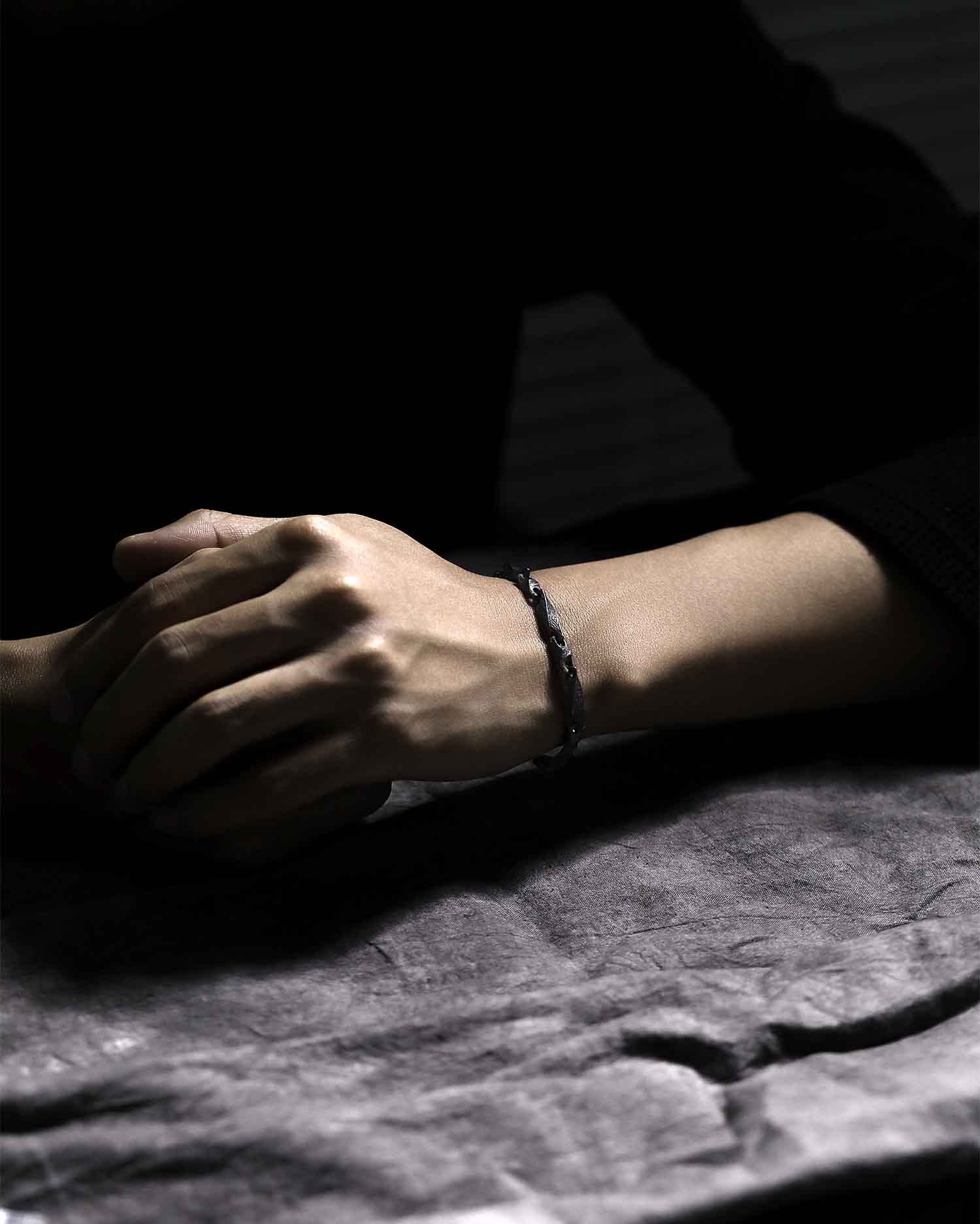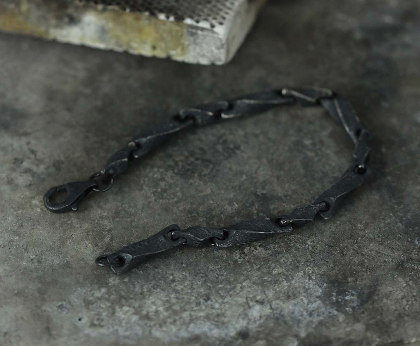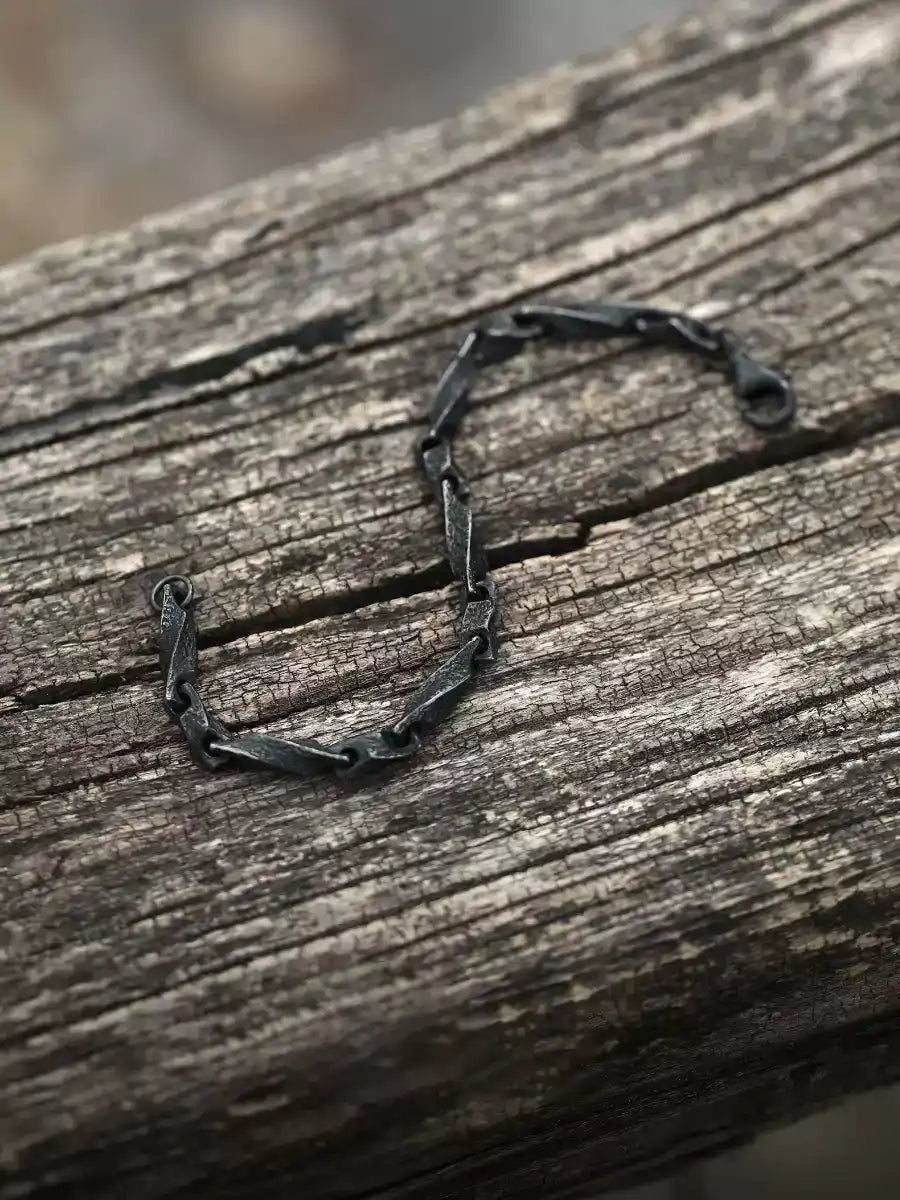 The oxidized finish brings out a textured, weathered surface that feels grounded and honest. Minimalist in form but rich in meaning, this bracelet is made for those who value craftsmanship and subtle strength.